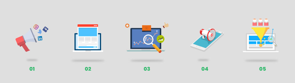 01. Social Media Marketing It is all about connecting your audience socially on different social site- From Facebook and Twitter to Snapchat and LinkedIn and even YouTube. It helps in growing your relationship with your customers fast. 02. Content Marketing A way to increase brand awareness by using storytelling skills and providing valuable information with the goal of getting your target audience to take a profitable action. 03. Search Engine Marketing (SEM): SEM refers to paid traffic from search engines unlike SEO. It is the mostly common type of search engine where marketer pay a predefined amount of money for showing their messages at various platforms. 04. Mobile Phone Advertising Most of the types of digital marketing takes place on your mobile phone these days like Facebook, Instagram, and Google. SMS marketing is also a type of mobile advertising usually used in local marketing. 05. SEO It’s primary purpose is generating organic search engine traffic that converts into sales and leads. SEO generates quantity of traffic, quality of traffic and provides organic results.